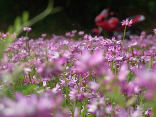 途中、レンゲ畑がキレイだったので . . . 寄り道「「 パシャ 」」