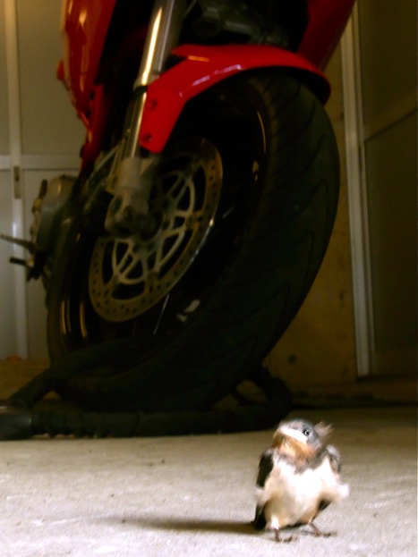 駐車場に住んでいるツバメの子 . . . 日に日に大きくなってきています ^^