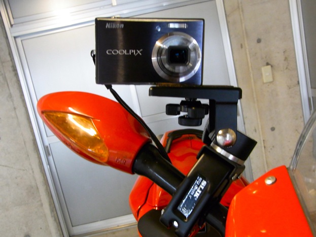 近頃はバイクで走りながら動画を撮る時は、クランプをバイクに取り付けてそれにデジカメを固定して撮っています。