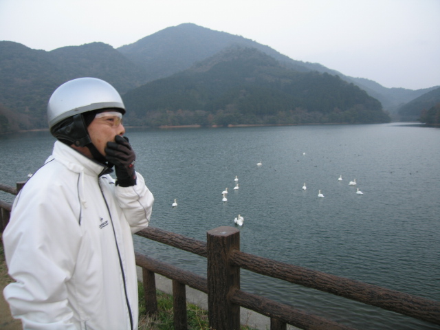 おっさん2人で白鳥見ながら、もちもちナーンドッグをほおばって、又トコトコ・・・