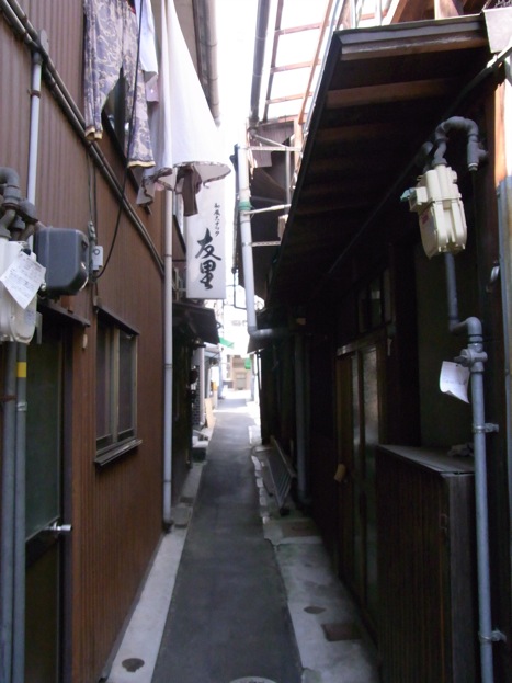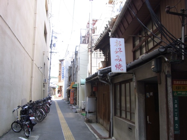 尾道にはこんな狭い路地に、おばちゃん一人でやってるお好み焼き屋さんがたくさんあります
