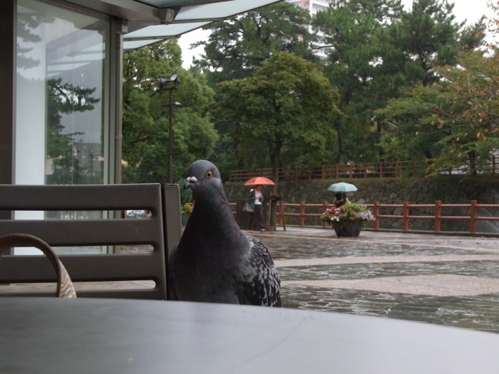 サッポロビール工場跡でハトが曇り空をうかがっているようです