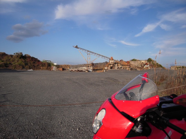 大きいトラックが出入りしていて、かなりほこりっぽい