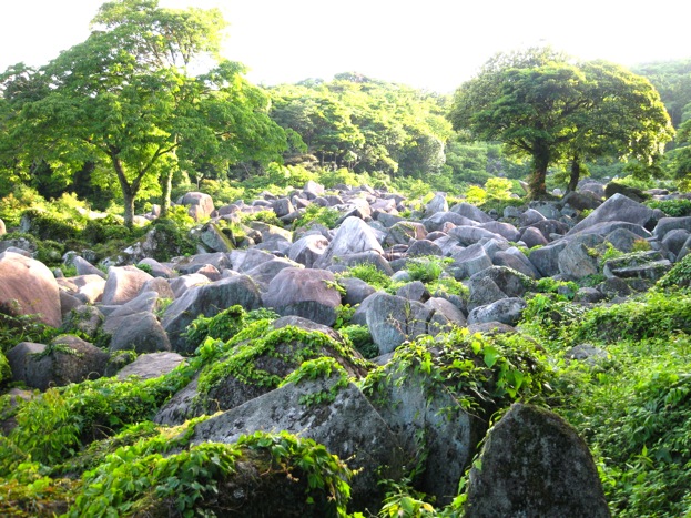 森に囲まれた広大な斜面にゴロゴロと岩岩岩・・・