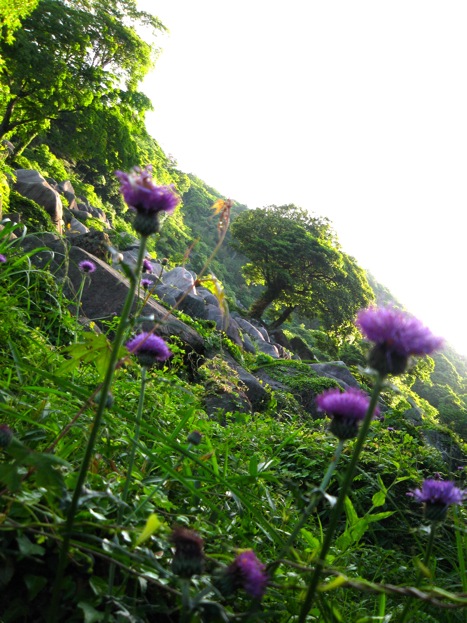 新緑のこの季節。アザミの華がここの風景と似合っています