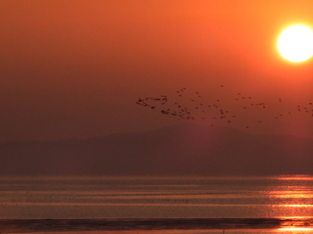 野鳥公園があるせいか?干潟においしい朝食でもあるのか?鳥も朝から忙しそうです。