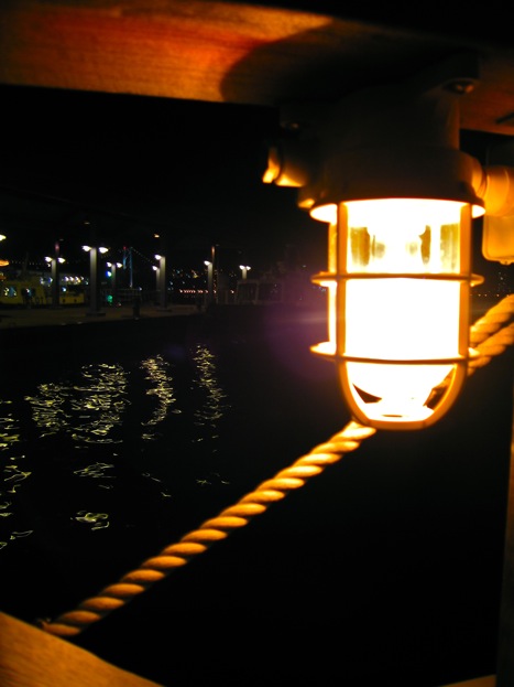 小さい窓から夜でもイルカが見られます