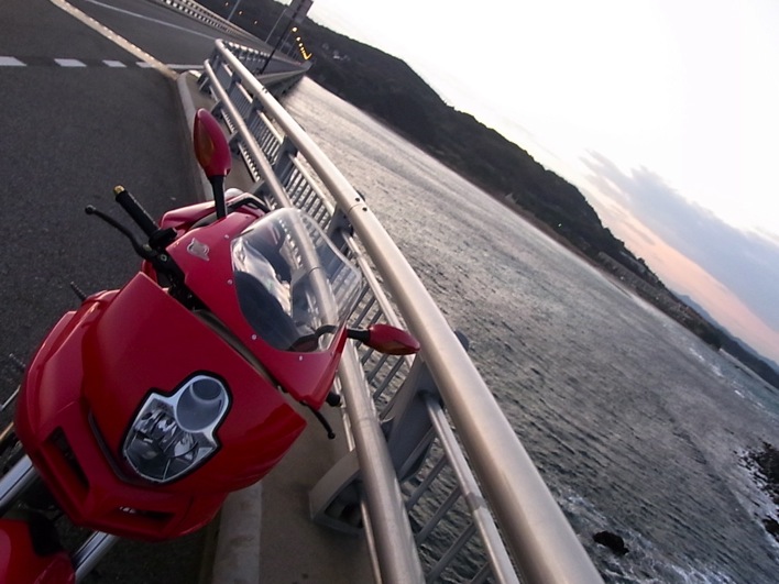 角島大橋の上は横風が強くってバイクが流されて恐かった〜^^;