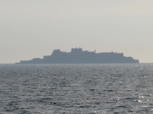 沖合に浮かぶ軍艦島がくっきりと、軍艦というよりも豪華客船のような形に見えました。