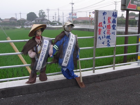 かかしのオジサンは誰に投票するのかな〜?