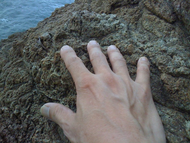 岩壁一帯が、柱状や板状の節理でできています