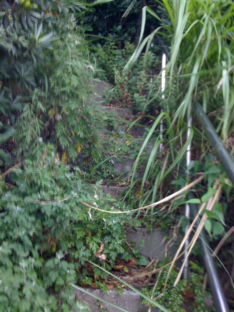 坂の途中カーブの所、おうちの庭に . . .