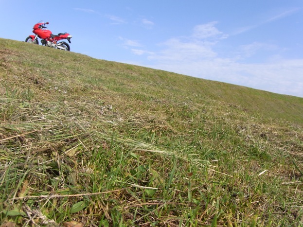 草の生えたこの坂を少し下って、ほんの少しジャンプ ^^;