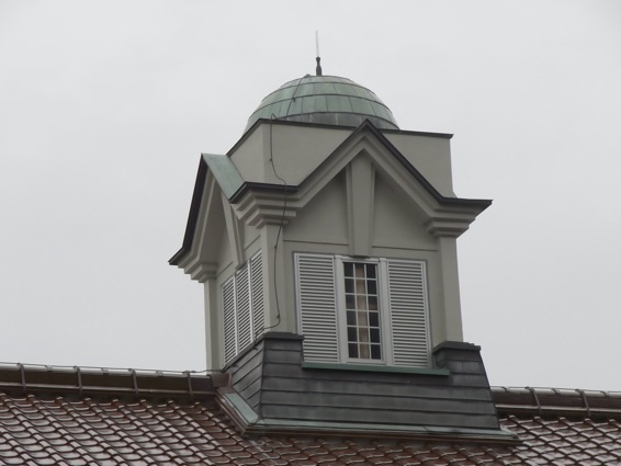 小さいながらも、縦長の窓や入り口上のひさし等、各所に洋風建築としての工夫が凝らされています