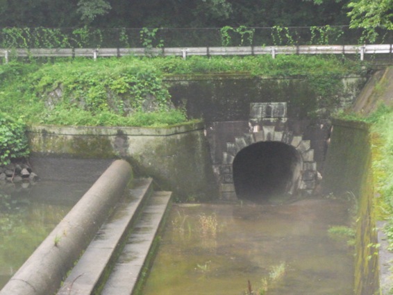 水が増してくると、取水塔近くの3段に築かれた溢水堰をオーバーフローし、入り口に「清波」と掲げられたトンネルをくぐり抜け、余水路を一気に滑り落ちていきます。
