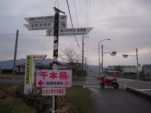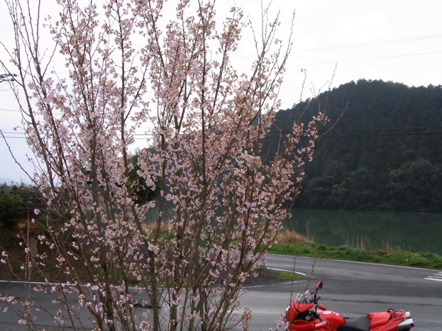 今日のお目当ては、歌野川ダムの自然活用村入り口付近の緋寒桜と、その少し先、湯の原ダムのミモザ・・・