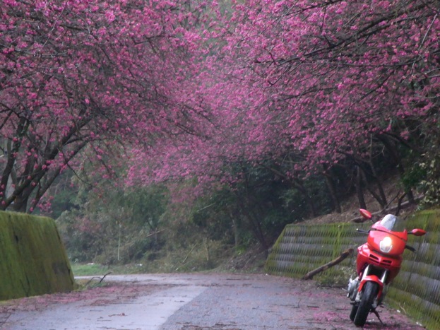 坂を登って行くと濃いピンクの桜のトンネルが出迎えてくれました^^