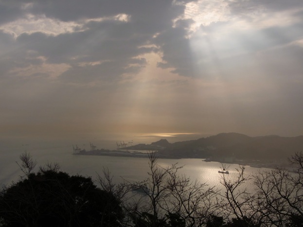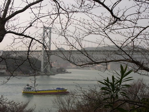 展望台に登る道のゲートは朝8時に開くので、それまでしばらく「海峡ビュー」から関門海峡を行き交う舟を眺めて朝の贅沢なひとときを...