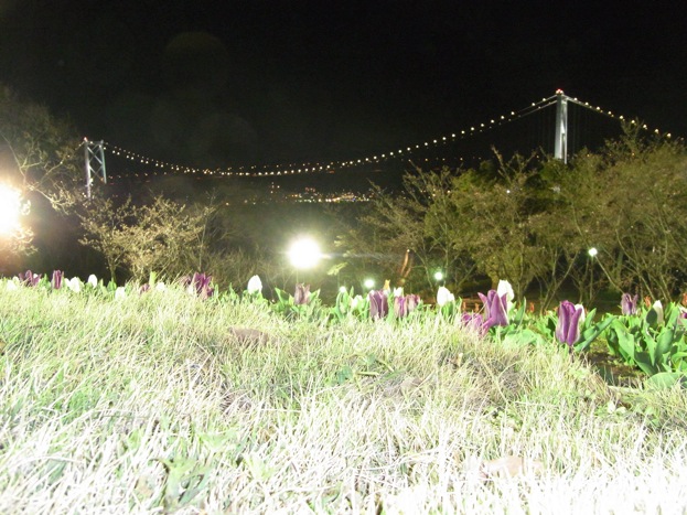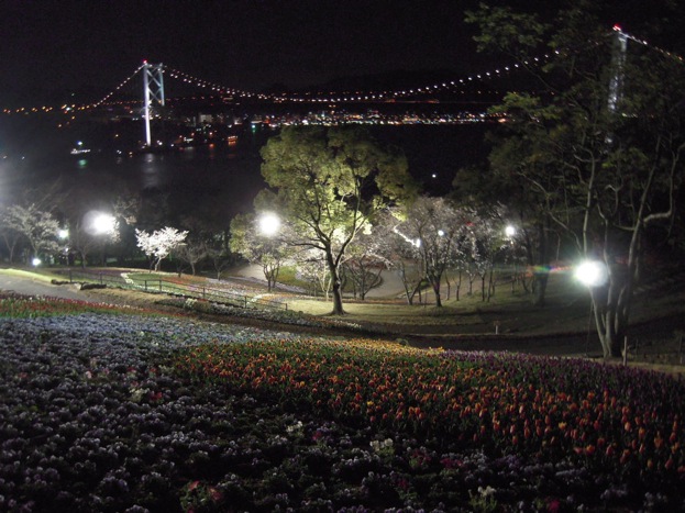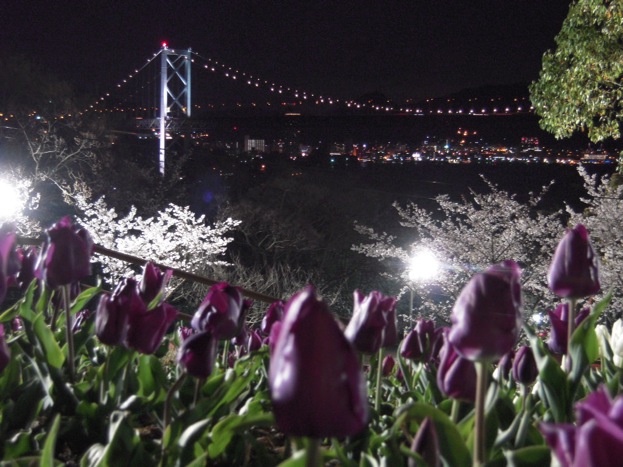 関門橋越しに見る門司の夜景、桜、チューリップ、満月 . . .