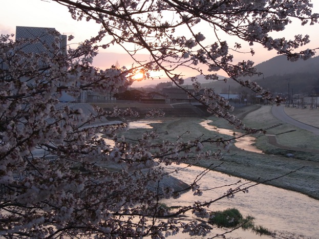美祢市役所手前の厚狭川に着くと同時に朝日が登ってきました ^^