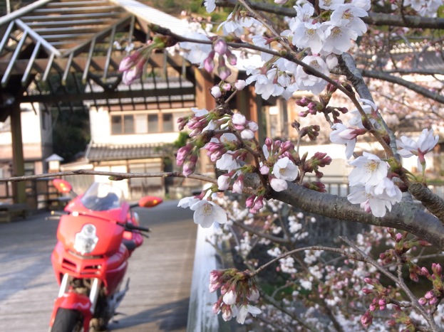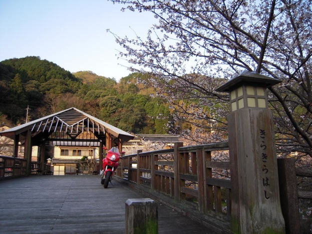 木造のきらきら橋と桜の花が見事に調和しています ^^