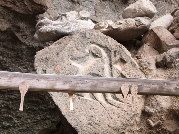 父親の無病息災、孫の安産祈願をしゃもじに書いて、羅漢様にお願いしてきました。