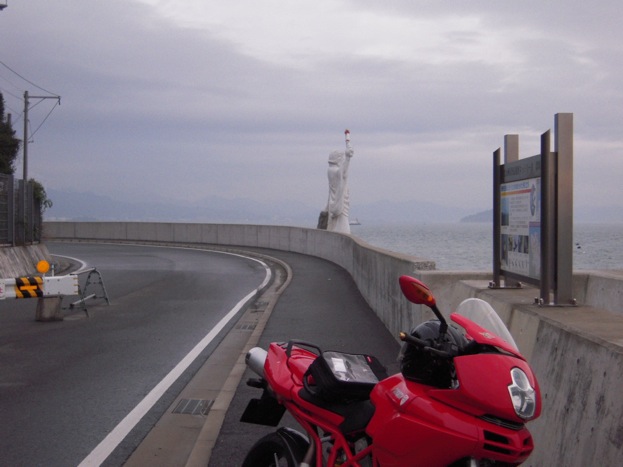 その道をひたすら突き当たりまで行くと(周囲は採石場で一見何もなさそうな道ですが...)海に向かって「自由の女神」のような大きな像が立っています。