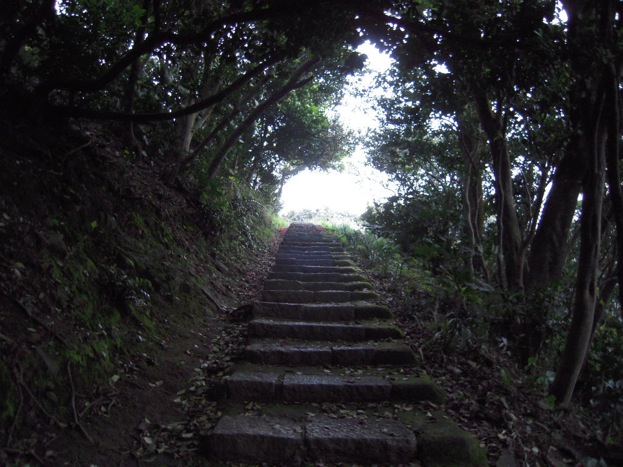 左側には駐車場があって雑木林の間の石段を登ると、部崎灯台があります。