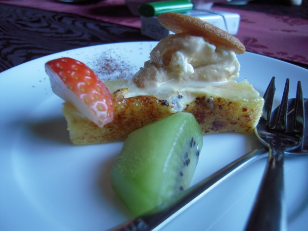写真はパスタランチのデザートです。芋のカタラーナにアイスとフルーツが添えてありました。これも中々美味でした!^^