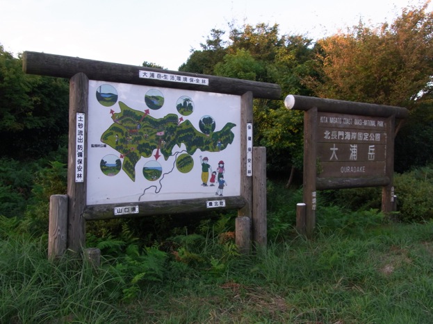 国道191号線、阿川の海水浴場(ほうせんぐり)を粟野方面(東)に少し行った所右手に「大浦岳森林公園」と看板が出ています