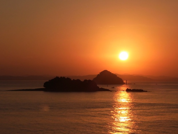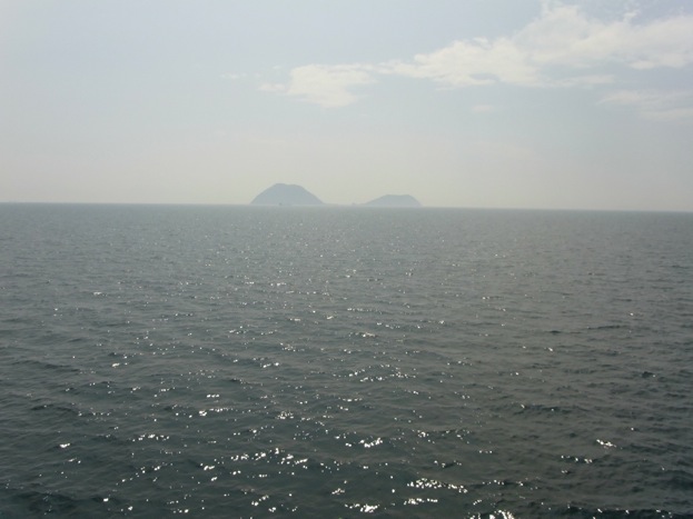 沖合に見える二つの無人島 . . .