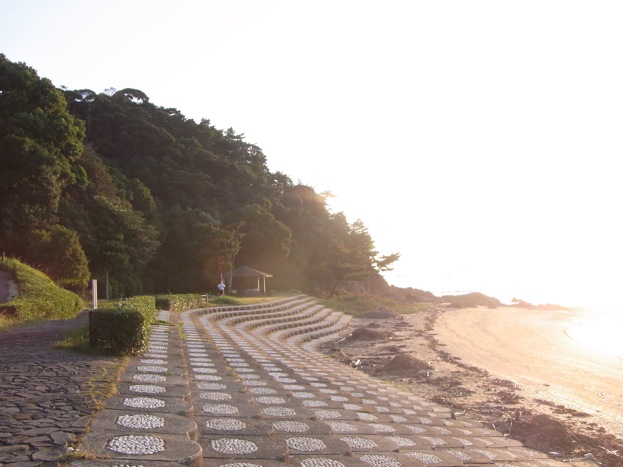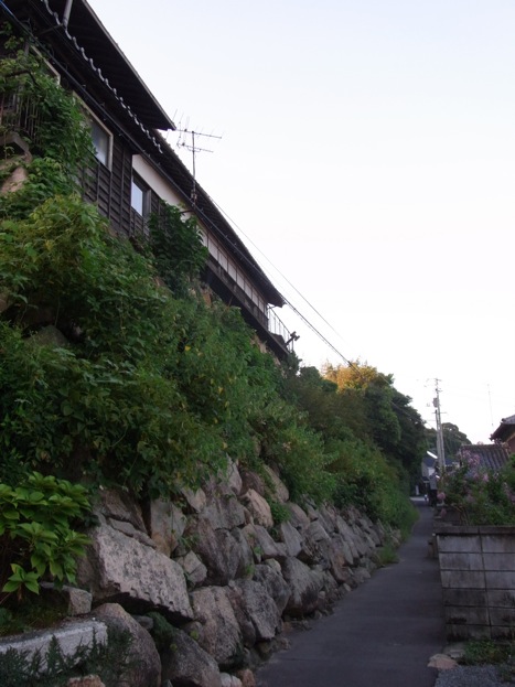 この辺りのかなり狭い路地を入って行くと、関見台公園の海側の三軒屋海岸という砂浜に出てきます