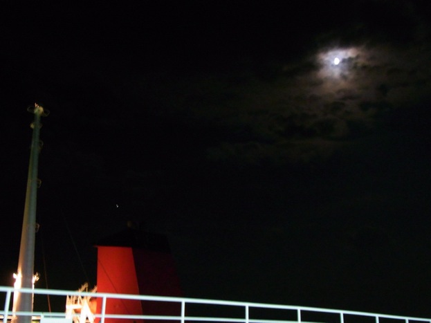 とすると、その向うに見える灯りの陸地って . . .