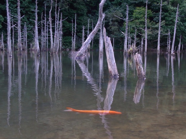 水面から木が伸びていて幻想的な素敵な景色の所なんだけど、やっぱり干上がっていて少し淋しい景色でした(・・;